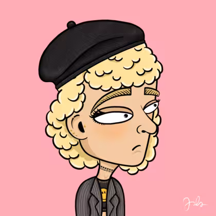 Collection Depressed Citizens Artist Juls Description ART. No team, no project, no future. Depressed Citizens is an urban & existential Art expression on Ordinals. In a parallel universe, "THEI" control us. DC unites against toxic society, encouraging critical thinking. 100% hand made collection that took Juls more than 6 months of daily work. Name Citizen#3287 Origin Caucasian non hispanic Gender Woman Necklace Choker Hat Black beret Mustache Beard No beard Glasses No Glasses Earrings Tragus star earring Hair Style Curly Clothes Smiley crop top Tattoo No Tattoo Star Background Without stars